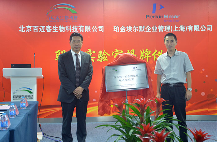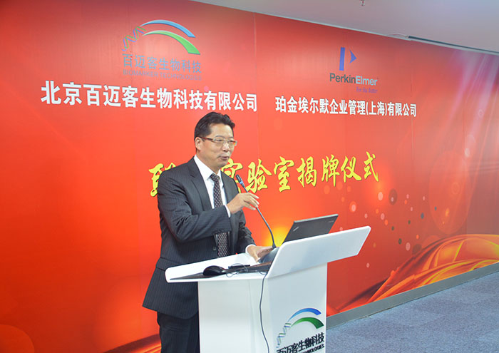 揭牌儀式上,百邁客CEO鄭洪坤在致辭中表示:“百邁客與珀金埃爾默公司建立聯(lián)合實(shí)驗(yàn)室,將展開(kāi)深入合作。雙方將聯(lián)合開(kāi)發(fā)更加適用于高通量測(cè)序的 自動(dòng)化文庫(kù)構(gòu)建系統(tǒng),此舉將大大提升測(cè)序前樣品處理的自動(dòng)化水平,提高百邁客在基因測(cè)序行業(yè)的競(jìng)爭(zhēng)力。與此同時(shí),珀金埃爾默公司也將借助百邁客在國(guó)內(nèi)的營(yíng) 銷體系進(jìn)一步拓展在中國(guó),乃至亞太地區(qū)的市場(chǎng)占有率。珀金埃爾默公司覆蓋全球的業(yè)務(wù)團(tuán)隊(duì)也將助力百邁客生物云平臺(tái)在全球市場(chǎng)的開(kāi)拓。我相信在雙方共同努力 下,通過(guò)真誠(chéng)密切的實(shí)質(zhì)性合作,聯(lián)合實(shí)驗(yàn)室的建設(shè)一定會(huì)達(dá)到互惠雙贏,共同發(fā)展的目的,一定會(huì)為企業(yè)合作塑造新典范,貢獻(xiàn)新經(jīng)驗(yàn)。”