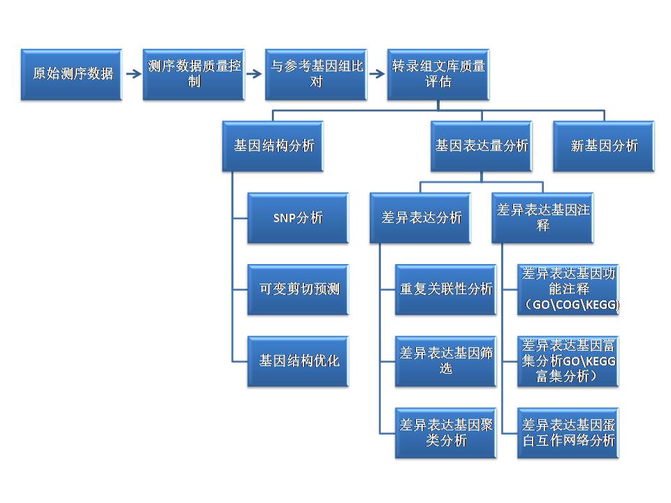 數(shù)據(jù)分析流程根據(jù)建庫的類型和研究目的的不同而各有差別,現(xiàn)以有參轉(zhuǎn)錄組信息分析流程為例來說明高通量數(shù)據(jù)分析的基本流程。