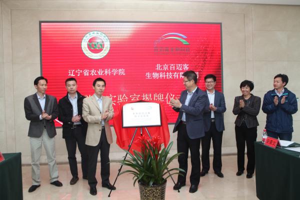 暮春時(shí)節(jié),盛京勝 景。2016年4月28日,百邁客-遼寧省農(nóng)科院聯(lián)合實(shí)驗(yàn)室揭牌儀式在農(nóng)科院展廳隆重舉行。農(nóng)科院隋國(guó)民院長(zhǎng)和百邁客鄭洪坤總裁為聯(lián)合實(shí)驗(yàn)室揭牌。農(nóng)科院 科技處安景文處長(zhǎng),創(chuàng)新中心鄒健秋主任,陸曉春副主任以及百邁客云科技有限公司張?jiān)鼋鹂偨?jīng)理,BD部張軍經(jīng)理參加揭牌儀式。