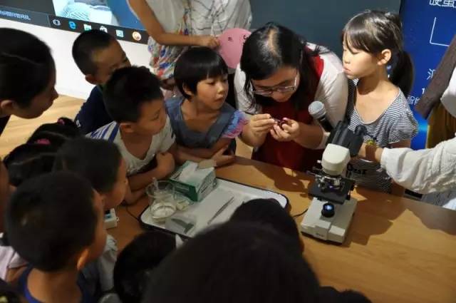 顯微鏡觀察細胞環(huán)節(jié),孩子們排起了長長的隊伍,興高采烈地實際動手操作顯微鏡。想必這些小小的腦袋里會留下這樣的嘆號:“原來還有一個肉眼看不到的世界是這個樣子”。