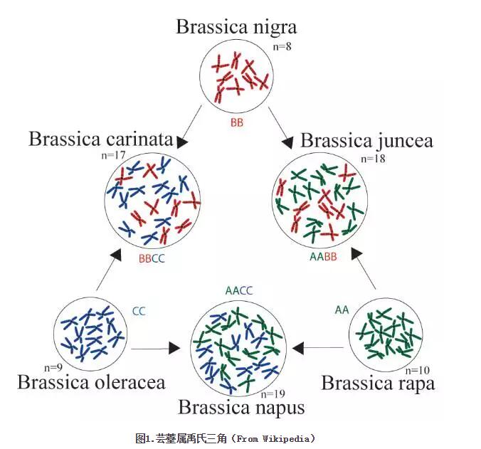 導(dǎo)致蕓薹屬種內(nèi)形態(tài)型多樣化以及種間趨同馴化的機制是什么?這是科學(xué)家們一直在探討的問題。然而蕓薹屬的起源進化歷史也是相當(dāng)?shù)摹安ㄕ邸薄|薹屬的祖先 是一個具有7條染色體的二倍體,在約1200萬年前發(fā)生過一次全基因組三倍化事件,該事件導(dǎo)致一個具有42條染色體的古六倍體物種出現(xiàn)。隨后這個六倍體物 種的基因組發(fā)生了廣泛的二倍體化——有時候一條染色體的一段區(qū)域轉(zhuǎn)移到另一條染色體上,有時候某個區(qū)域會丟失,更有時候連整條染色體都會消失。最終六倍體 的又變回了二倍體的“模樣”,形成了現(xiàn)在的蕓薹屬二倍體物種分類格局?!绱藦?fù)雜的進化歷史自然帶來不少的阻礙,所幸的是,借助于不斷發(fā)展的高通量測序 技術(shù)和生物信息分析方法,科學(xué)家們能夠從基因組層面解析物種的進化機制成為可能。