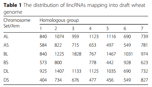 2、這種比對(duì)結(jié)果顯示:響應(yīng)真菌感染表達(dá)的lincRNAs能比對(duì)到小麥所有亞基因組上,說(shuō)明小麥響應(yīng)真菌感染由A、B、D三個(gè)亞基因組協(xié)同發(fā)揮作用。