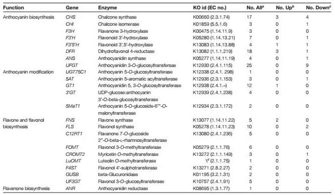 表1 藍(lán)色風(fēng)信子與花色素有關(guān)的候選基因