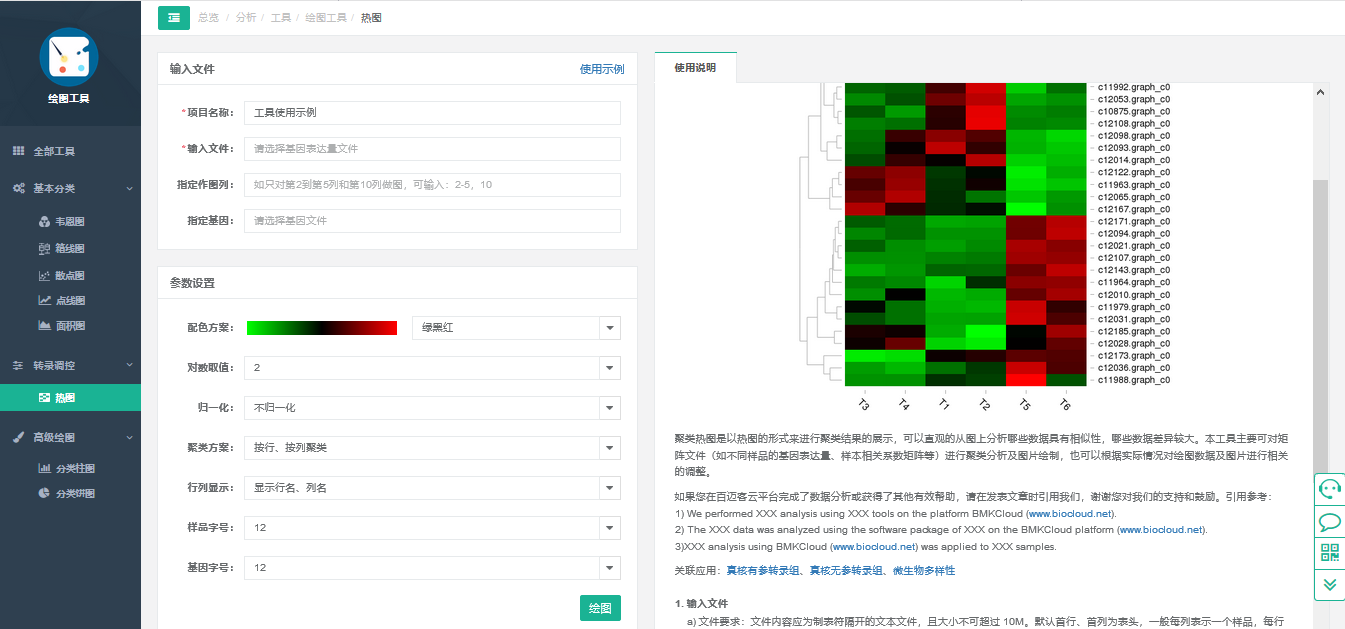 是由北京百邁客生物科技有限公司開發(fā),集生物信息分析軟件、數(shù)據(jù)庫以及云計算為一體的生物大數(shù)據(jù)分析平臺。功能強大,操作簡單的聚類熱圖就介紹到這里了,后期云平臺會為大家準(zhǔn)備更多實用小工具的操作指引,如果您在操作過程中遇到任何問題都可以聯(lián)系咱們的云客服,歡迎點擊屏幕右下方客服圖像進(jìn)入咨詢環(huán)節(jié)。