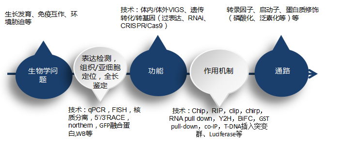基因或ncRNA研究組成模塊本質(zhì)上是差不多的,都是由生物學(xué)問題、分子(基因或ncRNA)、功能和機制、通路組成,而每個層面又有針對于不同情況的具體的實驗技術(shù),而文章的千變?nèi)f化就在于這些模塊之間、這些技術(shù)之間的不同組合。