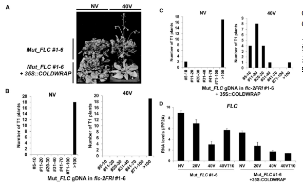 比如這篇發(fā)表在Developmental Cell的章中對lncRNA COLDWRAP的RNAi敲除品系表現(xiàn)出減少的春化反應(yīng),將COLDWRAP轉(zhuǎn)入COLDWRAP突變體后,COLDWRAP表達恢復(fù)了春化反應(yīng)。