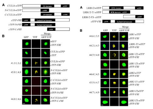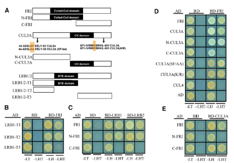之后在體內(nèi),用BiFC在體內(nèi)驗證定位、酵母雙雜交、GST pull-down結(jié)果,用co-IP分析瞬時表達FRI和CUL3A再次驗證相互作用。