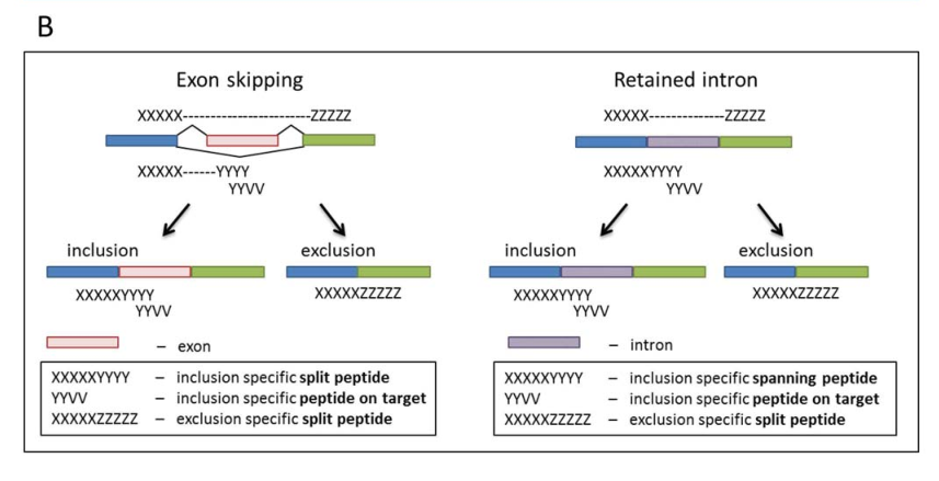 Splicify提供了一種蛋白組數(shù)據(jù)分析方法,可以用于確定由mRNA選擇性剪接產(chǎn)生的疾病特異性蛋白生物標(biāo)志物,適合用臨床前模型系統(tǒng)來(lái)解決基礎(chǔ)研究問(wèn)題。其中剪接變異在RNA水平上的驗(yàn)證是通過(guò)RT-qPCR以及Iso-seq得到的全長(zhǎng)轉(zhuǎn)錄本進(jìn)行的;通過(guò)Iso-seq得到的全長(zhǎng)轉(zhuǎn)錄本可以對(duì)新的剪接事件在蛋白層面上進(jìn)行驗(yàn)證。