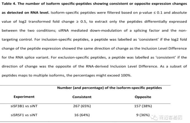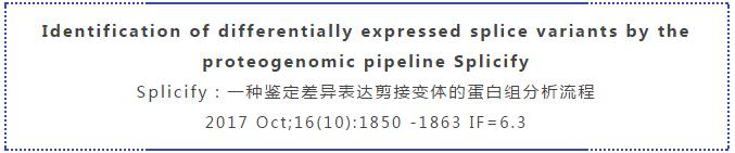 Splicify的意義在于識(shí)別RNA水平和蛋白質(zhì)水平上的isoform。通過(guò)對(duì)RNA和蛋白水平的對(duì)比分析證明該方法能夠成功地識(shí)別特定條件下蛋白質(zhì)水平上的異常剪接事件。