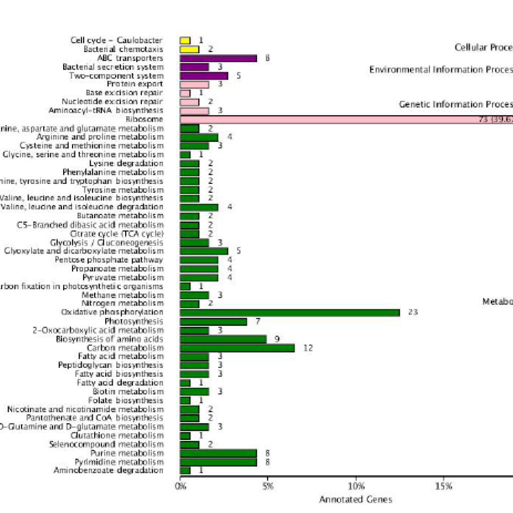 - KEGG數(shù)據(jù)庫第一層級注釋的相對功能豐度柱形圖