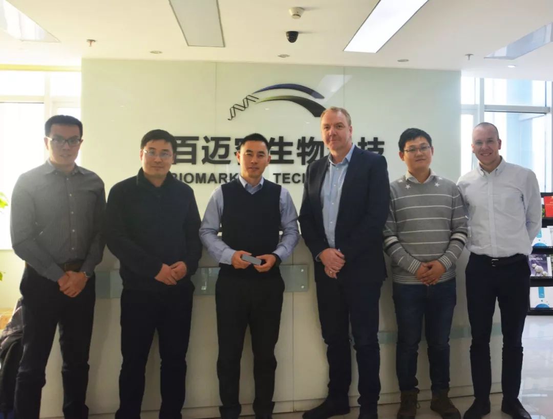 (百邁客CEO鄭洪坤先生等與Oxford Nanopore 商業(yè)運營副總裁Richard等合影)