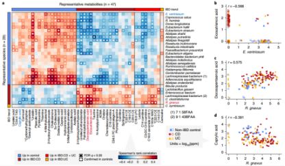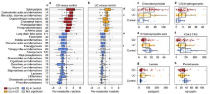 (圖1.b-e:IBD與個(gè)體腸道微生物和代謝物的關(guān)聯(lián)性)