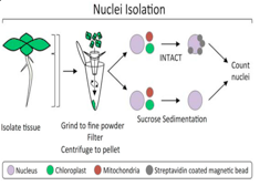 植物:針對植物,Tn5轉(zhuǎn)座酶同時可以錨定核外遺傳物質(zhì),如葉綠體的基因組,降低了映射到核基因組的reads比例,減少了可用于鑒定開放染色質(zhì)調(diào)控區(qū)域的信息量,因此主要利用如下兩種方法進行ATAC-seq研究: