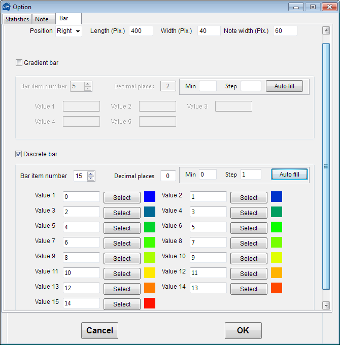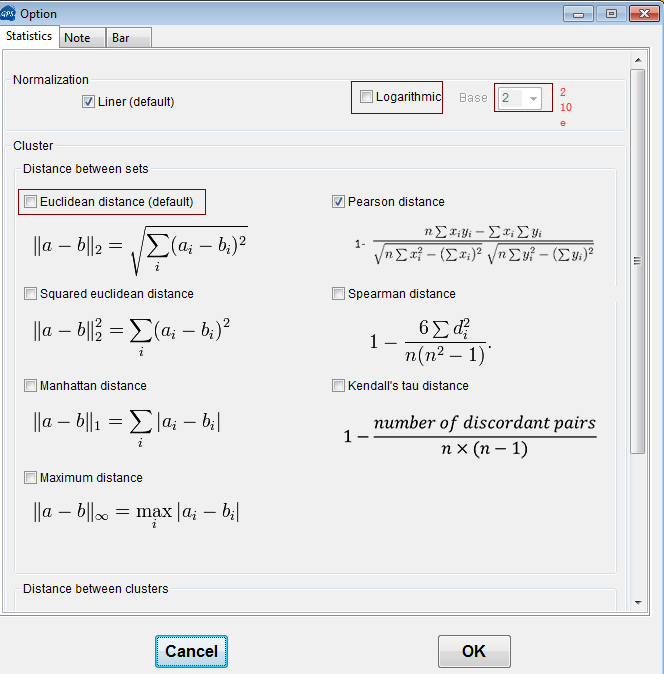 定義顏色標尺連續(xù)或不連續(xù),右鍵Set up bar;Set up statistic: 設置繪制此熱圖使用到的數(shù)學上的屬性(歸一化和聚類方法),一般二代數(shù)據(jù)選擇對數(shù)歸一化方式。