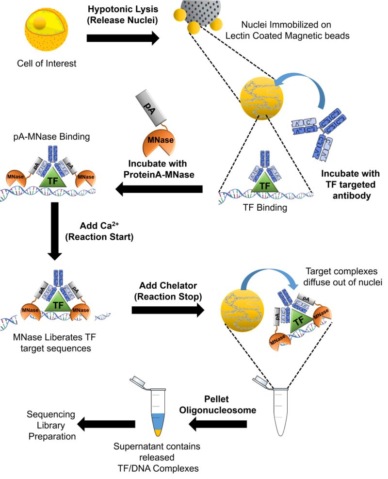 ATAC-seq數(shù)據(jù)中含有大量線粒體DNA(mtDNA) reads,嚴(yán)重影響數(shù)據(jù)的有效比例和有效測(cè)序深度,使用經(jīng)典的ATAC-seq建庫(kù)測(cè)序方法,作者觀察到在K562細(xì)胞中比對(duì)到mtDNA reads比例在75%。