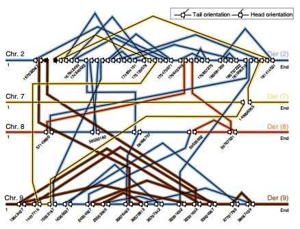 染色體碎裂即為一個染色體在復(fù)制過程被打碎,然后這些碎片以另一種順序重組(其實小編的理解就是一堆結(jié)構(gòu)變異集中發(fā)生了)。