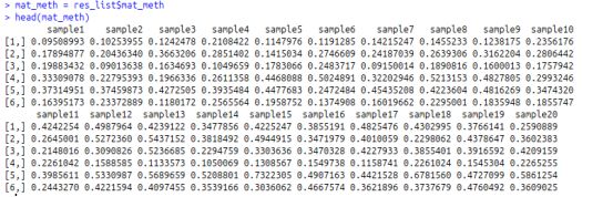 #矩陣,其中行對應(yīng)差異甲基化區(qū)域(DMR),矩陣中的值是每個(gè)樣品中DMR中的平均甲基化水平。