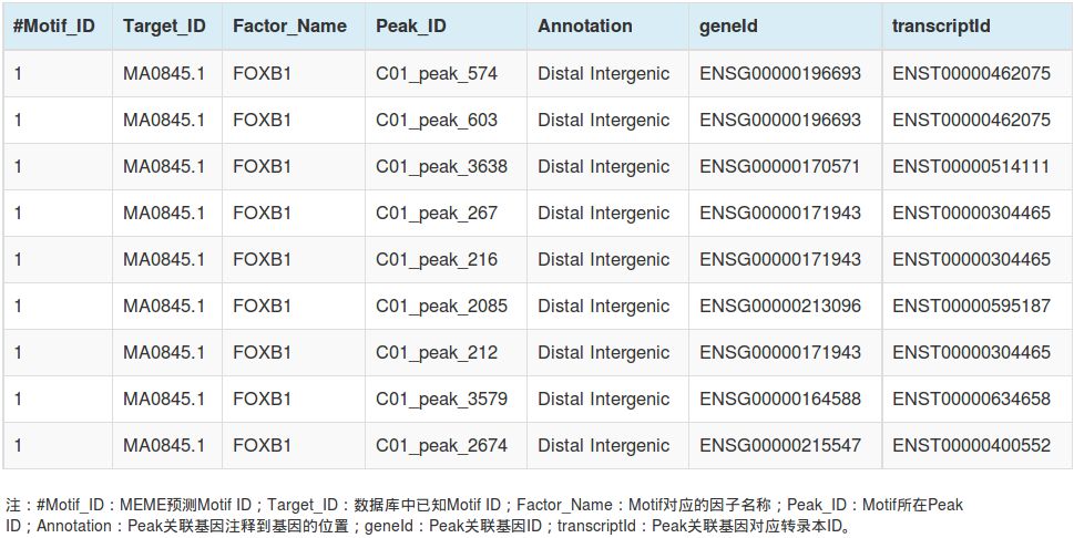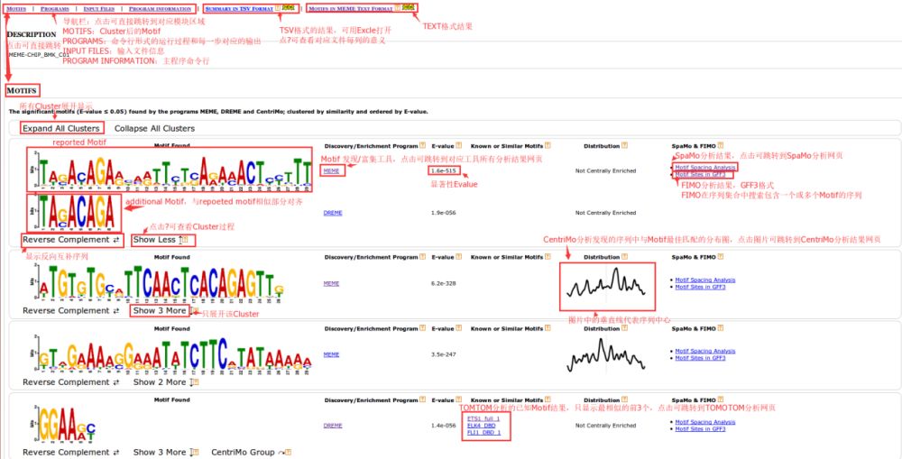 我們根據實際需求,從MEME-ChIP的原始分析結果中提取了精華,提供了較為全面完整的分析結果: