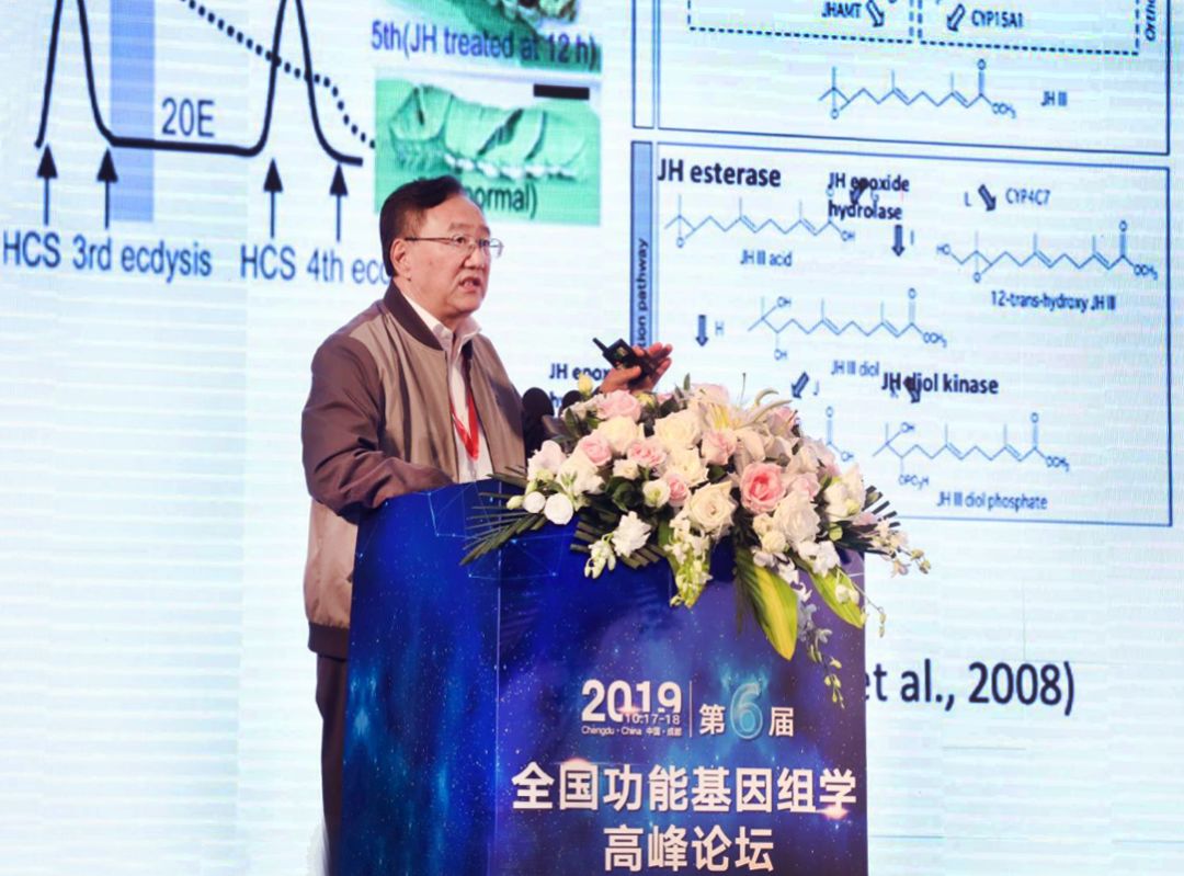 康樂院士做了題為“體色與防御”的學(xué)術(shù)報告??翟菏繄F隊利用多組學(xué)分析方法對蝗蟲體色與防御機理進行深度分析,并對深奧復(fù)雜的學(xué)術(shù)問題做了“簡潔、生動、有趣”的總結(jié)展示,尤其是報告中提到的“蝗蟲體色三原色規(guī)則”,引起了與會者極大的興趣,并啟發(fā)大家做學(xué)術(shù)研究要有更跳躍的思維、更寬廣的研究思路。