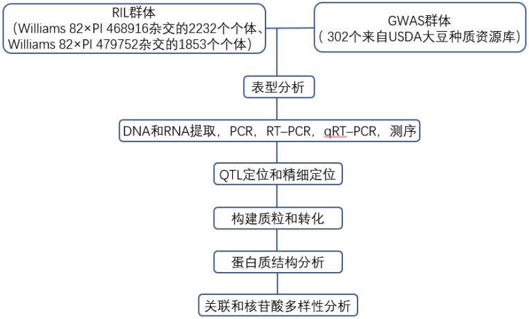 大豆(Glycine max)是從6000到9000年前的東亞野生親緣大豆中馴化而來,導(dǎo)致了巨大的形態(tài)和生理變化,統(tǒng)稱為“馴養(yǎng)綜合癥”。一些與馴化有關(guān)的性狀(DRT)受一主要QTL控制,并且不同DRT所基于的某些QTL區(qū)域重疊。