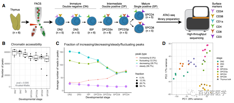圖1通過ATAC-Seq染色質(zhì)可及性區(qū)分健康T細胞前體的成熟階段