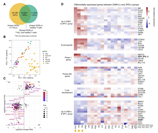 圖4 T-ALL染色質(zhì)可及性概況與正常人T細胞發(fā)育的不成熟階段最相似