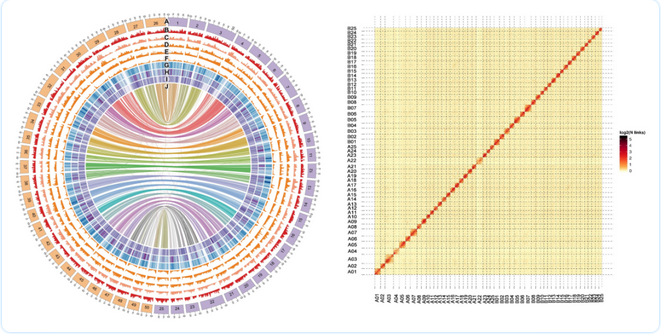 圖1 金魚A亞基因組和B亞基因組概況(A);金魚Hi-C互作熱圖(B)
