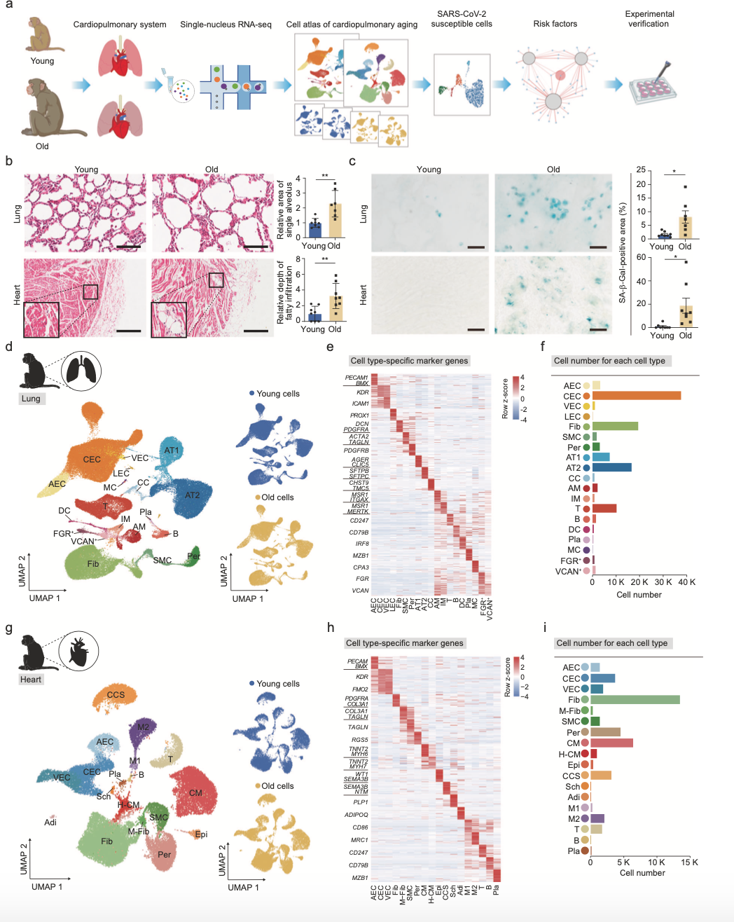 作者描繪了年老的靈長類心肺系統(tǒng)的轉(zhuǎn)錄圖譜,并提供了關(guān)于年齡相關(guān)的SARS-CoV-2易感性的重要見解,這表示神經(jīng)保護(hù)策略可能降低老年人中COVID-19的嚴(yán)重程度。