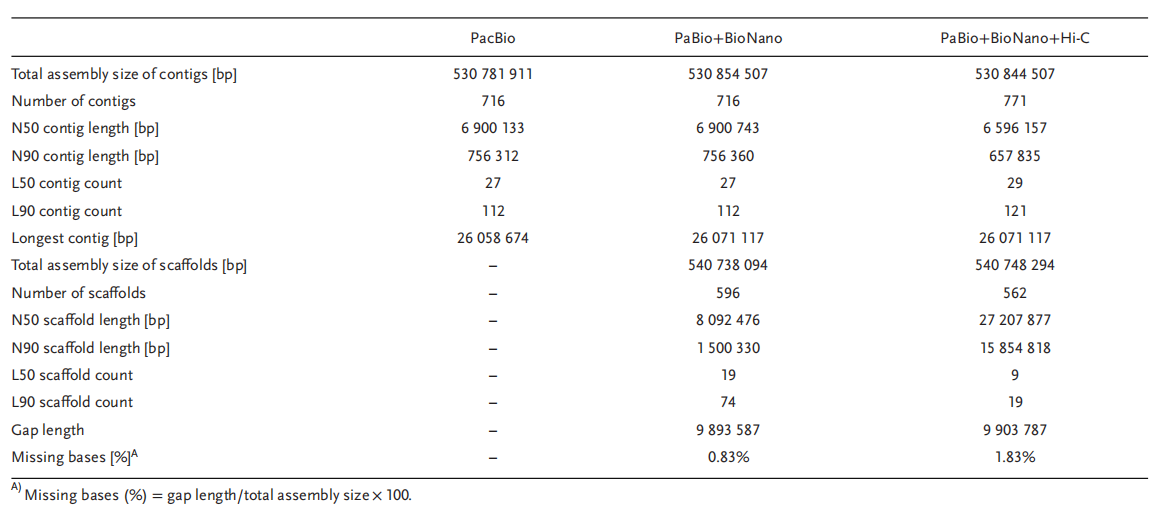 - 材料:C.×hytivus自交第14代(S14);測序:~69X PacBio+~104X Hi-C+Bionano;轉錄組輔助基因預測:Illumina RNA-Seq 及 PacBio Iso-Seq