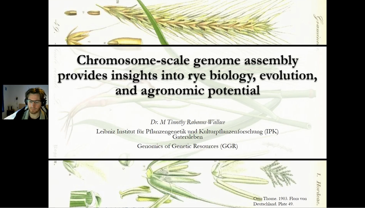 德國萊布尼茨植物遺傳與作物研究所Timothy Rabanus-Wallace 博士講述了黑麥基因組破譯所面臨的挑戰(zhàn),并細致全面的講述了本次研究聯(lián)合短讀長、Hi-C、10×Genomics、遺傳圖譜及光學圖譜等技術(shù)如何破譯歐洲栽培黑麥“Lo7”基因組。解析了黑麥基因間空間的演化,以及抗病、抗寒與自交不親和等生物學過程的發(fā)生與作用機制,揭示了黑麥易位染色體片段對小麥遺傳改良的重要作用。Timothy 博士表示,未來可以基于品種間Hi-C基因組定位,在威寧黑麥和Lo7基因組間進行系統(tǒng)的結(jié)構(gòu)比較,研究不同品系黑麥基因組間的大片段結(jié)構(gòu)變異。