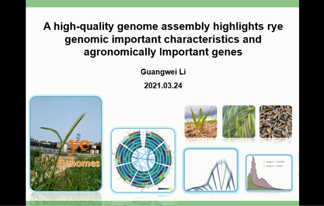 河南農(nóng)業(yè)大學李廣偉博士系統(tǒng)解析了黑麥的演化歷史,展示了黑麥的分類起源和世界遺傳資源分布,并表示黑麥作為全球麥類基因資源具有重要的研究意義。通過中國栽培種“威寧黑麥”基因組的高質(zhì)量精細物理圖譜的構(gòu)建,展示了其復(fù)雜的基因組特征、復(fù)雜的染色體變異以及淀粉合成、儲存蛋白、抽穗期及馴化等相關(guān)基因的詳細機制。最后李廣偉博士表示威寧黑麥基因組的破譯對深化比較谷類基因組研究,加速黑麥及相關(guān)谷類作物的遺傳改良具有重要價值。