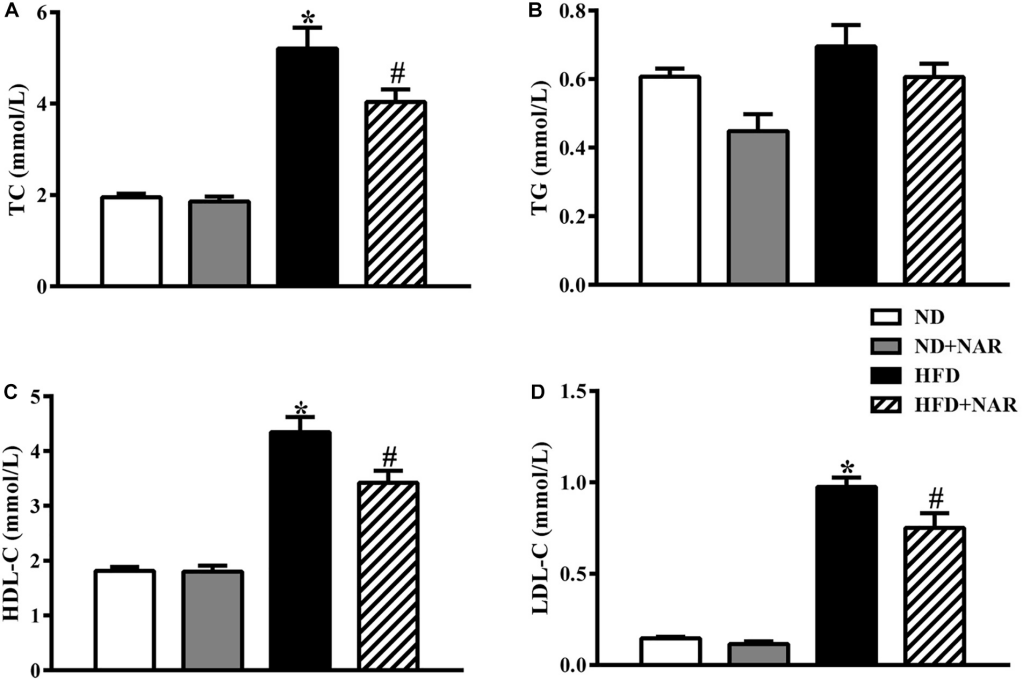 1、補(bǔ)充NAR減少HFD誘導(dǎo)小鼠脂質(zhì)積累