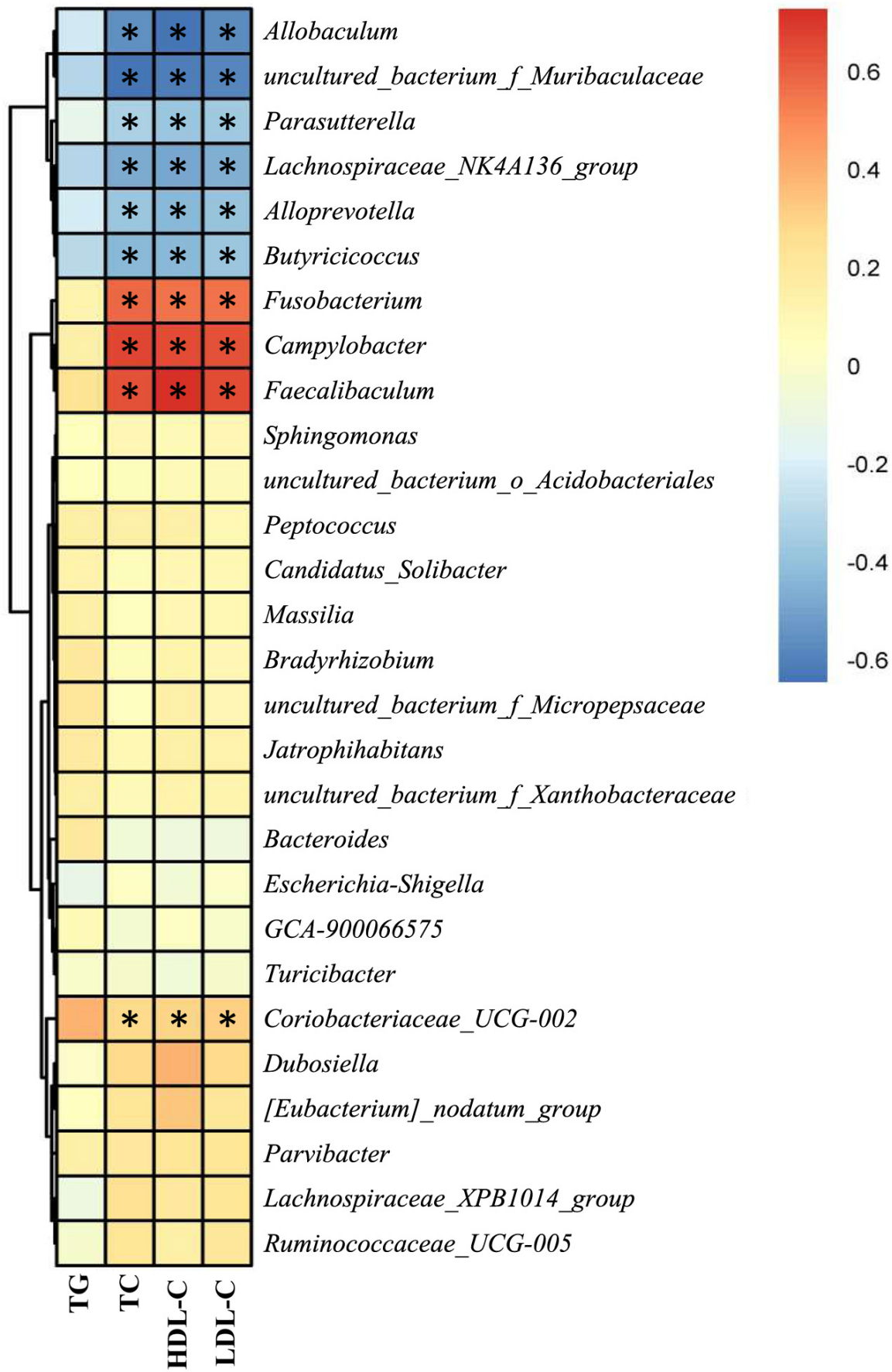 圖8 腸道細(xì)菌相對豐度與血脂水平的相關(guān)性