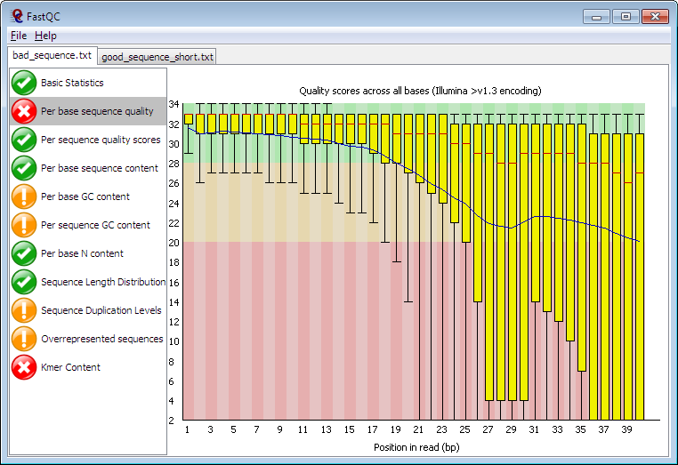 測序數(shù)據(jù)的質(zhì)量直接決定了數(shù)據(jù)分析的質(zhì)量及可靠性。低質(zhì)量的測序數(shù)據(jù)往往導(dǎo)致分析結(jié)果出現(xiàn)異?;蛘叻治鼋Y(jié)果中包含過多的假陽性假陰性結(jié)果。利用FastQC可以快速實現(xiàn)對大量測序數(shù)據(jù)的質(zhì)量評估并生成分析結(jié)果報告。分析的指標完善,同時可以生成可視化的圖形報告,數(shù)據(jù)質(zhì)量結(jié)果一目了然。