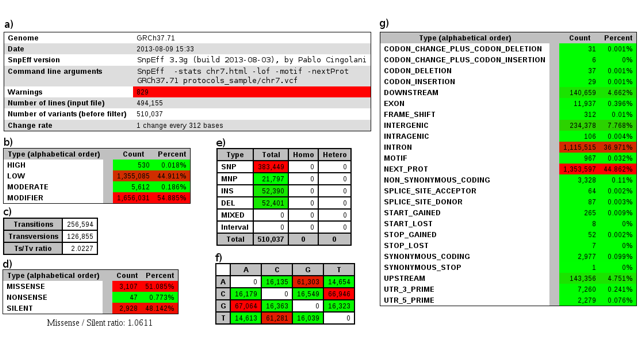 SnpEff 軟件通過基因組結(jié)構(gòu)注釋數(shù)據(jù)(GTF/GFF文件),對VCF文件中的SNP/InDel信息進行注釋,即主要解釋了SNP/InDel是否能夠?qū)幋a蛋白基因造成影響。SnpEff自帶大量已經(jīng)發(fā)表的基因組的信息,可以快速利用已發(fā)表的基因組信息進行SNP/InDel位點的注釋分析。對于未收錄的基因組,SnpEff也提供了標準流程來構(gòu)建對應(yīng)的分析數(shù)據(jù)庫。