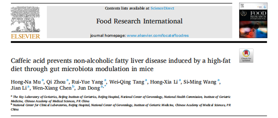 中文名稱:?咖啡酸通過調節(jié)小鼠腸道菌群預防由高脂肪飲食引起的非酒精性脂肪肝