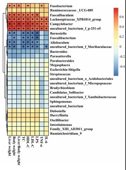 6.腸道菌群與NAFLD相關參數(shù)的相關性
