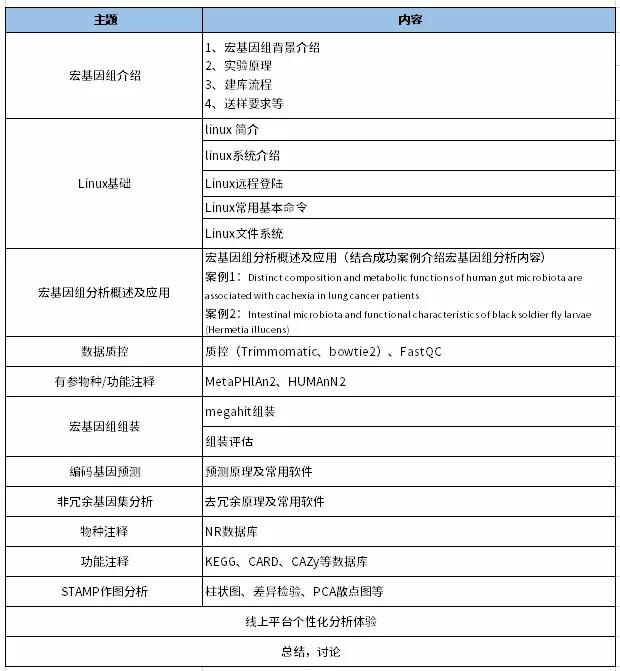 本課程從IF = 10及4分的SCI文章入手,從宏基因組背景介紹、實驗(實驗測序原理、建庫方法和流程、送樣注意事項等)、分析(下機數(shù)據(jù)質控、有參注釋、無參組裝/預測/物種注釋/功能注釋等)、可視化作圖,讓您全面了解宏基因組分析每個過程,并結合案例文章,讓您了解宏基因組文章思路,助力科學研究。