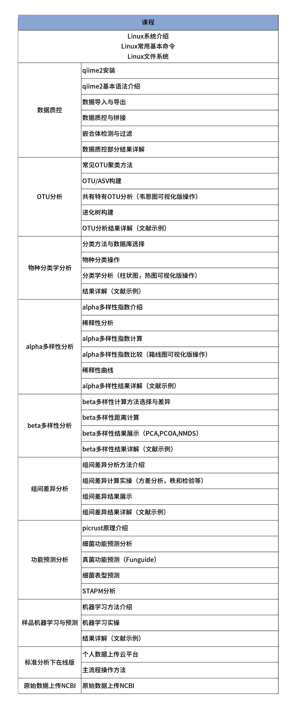 本課程從IF=10及4分的SCI文章入手,從宏基因組背景介紹、實(shí)驗(yàn)(實(shí)驗(yàn)測序原理、建庫方法和流程、送樣注意事項(xiàng)等)、分析(下機(jī)數(shù)據(jù)質(zhì)控、有參注釋、無參組裝/預(yù)測/物種注釋/功能注釋等)、可視化作圖,讓您全面了解宏基因組分析每個(gè)過程,并結(jié)合案例文章,讓您了解宏基因組文章思路,助力科學(xué)研究。