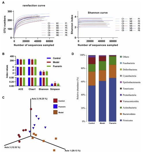 廣州中醫(yī)藥大學(xué)藥學(xué)院、 廣東藥科大學(xué)中醫(yī)學(xué)院、中山大學(xué)附屬第六醫(yī)院聯(lián)合在Journal of Pharmaceutical and Biomedical Analysis雜志發(fā)表以“Therapeutic potential of puerarin against methionine-choline-defificient diet-induced non-alcoholic steatohepatitis determined by combination of 1H NMR spectroscopy-based metabonomics and 16S rRNA gene sequencing”為題的文章,揭示葛根素對(duì)非酒精性脂肪性肝炎的治療方向的相關(guān)研發(fā)現(xiàn),從而為非酒精性脂肪性肝病的治療提出新的見解理論基礎(chǔ)。其中微生物多樣性檢測(cè)由百邁客協(xié)助完成。