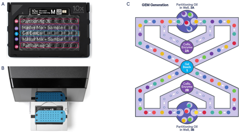 功能強大的單細(xì)胞Chromium X系統(tǒng)終于落地百邁客,也揭開其神秘的面紗。該系統(tǒng)依舊是在Next GEM的微流控原理基礎(chǔ)上,全程自動化分選、捕獲、標(biāo)記數(shù)十萬個乃至百萬個單細(xì)胞微滴,并通過10x Barcode條形碼識別每一個微滴,從而實現(xiàn)了單個細(xì)胞基因表達檢測。