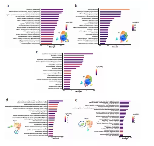 從細(xì)胞間相互作用分析產(chǎn)生ST指示性數(shù)據(jù)表明基質(zhì)誘導(dǎo)免疫調(diào)節(jié)。因此假設(shè)肌腱內(nèi)免疫區(qū)室的主要作用是調(diào)節(jié)和解決損傷;然而隨著微創(chuàng)傷的累積,肌腱細(xì)胞發(fā)起的碎片去除和基質(zhì)修復(fù)的基本過程可能導(dǎo)致免疫區(qū)室陽性擴增。進一步提出,在患者肌腱內(nèi),免疫穩(wěn)態(tài)可能變得不平衡,激活的免疫細(xì)胞由內(nèi)皮細(xì)胞和基質(zhì)細(xì)胞引發(fā),促進炎癥循環(huán)和異常組織修復(fù)。炎癥環(huán)境,包括在這個初步肌腱圖譜中明確證明的細(xì)胞因子通路,在一系列炎癥性RMDs中產(chǎn)生有效的免疫干預(yù)。最值得關(guān)注的是在人類肌腱疾病中定位和研究這些通路的潛力。