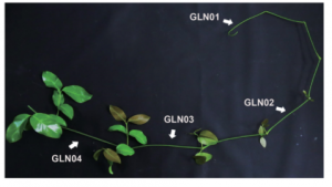 材料:GLN01(莖尖,直徑=0.5-2mm)、GLN02(2-3 mm)、GLN03(3-4 mm)和GLN04(4-5 mm)。每個發(fā)育階段制備了三個重復(fù)樣品(兩個來自雌性個體,一個來自雄性個體)