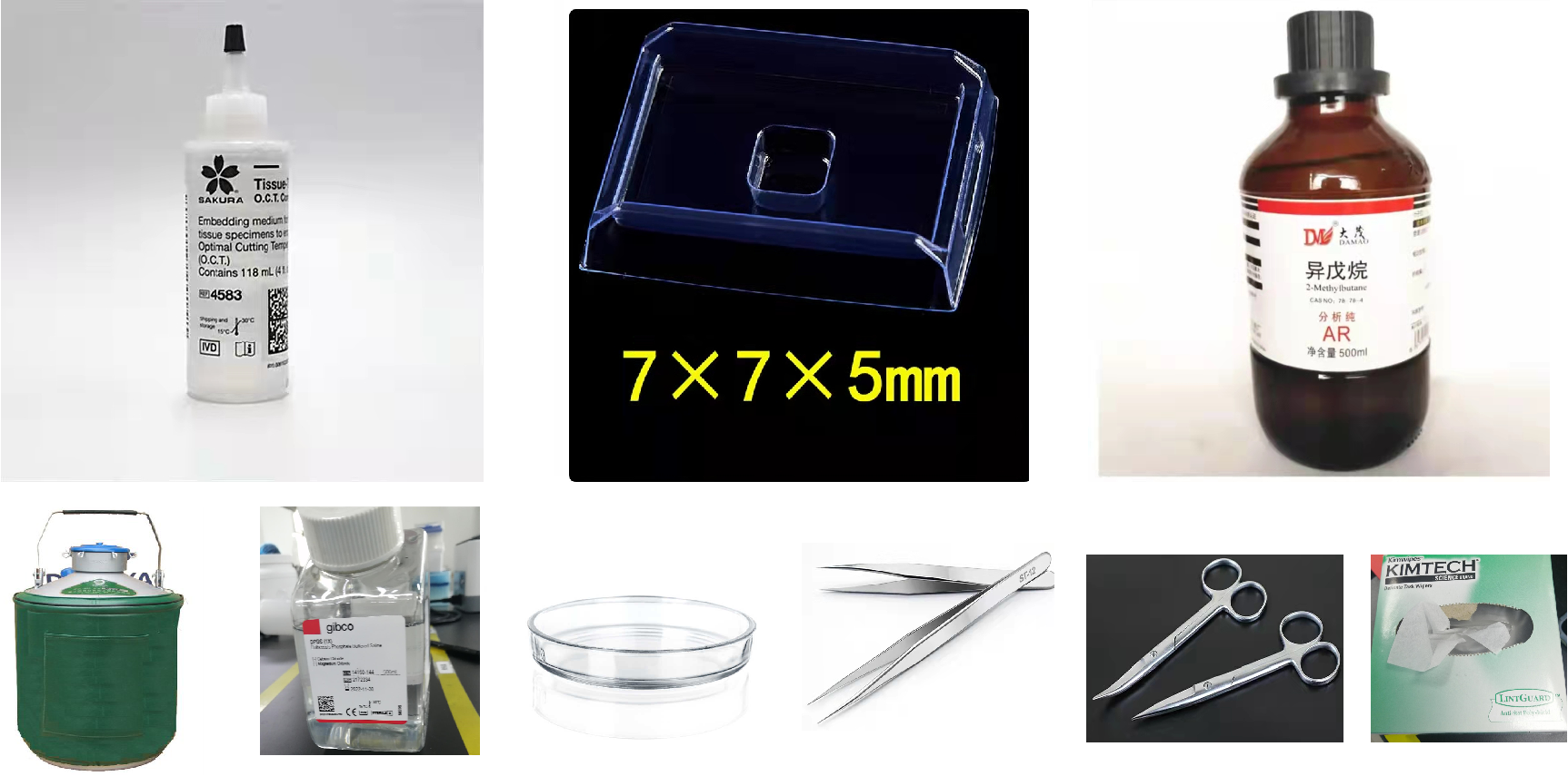 4. 液氮、1xPBS、鑷子、剪刀、冰塊、培養(yǎng)皿(二級裝備)、吸水紙:可購買或自行配置。