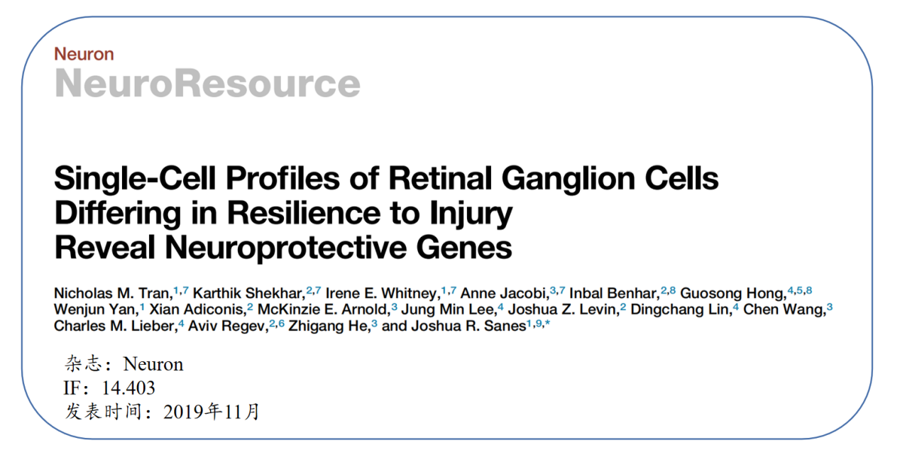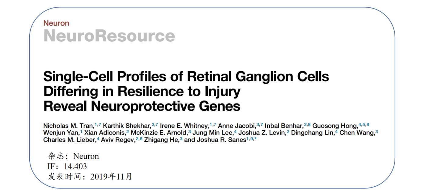 中樞神經(jīng)系統(tǒng)(CNS)無論是急性(例如創(chuàng)傷性損傷)還是慢性(例如神經(jīng)退行性疾病)的損傷,都會導(dǎo)致不可逆轉(zhuǎn)的神經(jīng)元損害甚至死亡,而那些存活下來的神經(jīng)元有的能長出新的軸突并重新建立突觸連接。該研究通過單細胞轉(zhuǎn)錄組揭示了與視神經(jīng)擠壓 (ONC)后小鼠視網(wǎng)膜神經(jīng)節(jié)細胞(RGC)的選擇性恢復(fù)能力相關(guān)的差異表達程序。