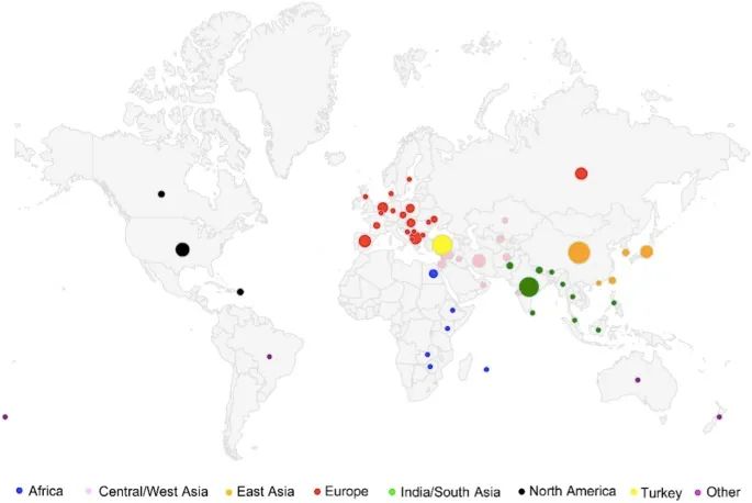2021年8月發(fā)表在《PNAS》上的“10,038份辣椒群體基因組分析”,調(diào)查了野生和馴化辣椒的基因組多樣性和種群結構,追溯了進化路線,并提供了一個反映人類貿(mào)易和歷史/文化影響的辣椒傳播模型。本結果突出了西-東擴張路線,揭示了南美洲和中美洲、非洲以及東亞/南亞之間的聯(lián)系,后兩者構成了辣椒多樣性的重要多樣化中心。最后,文章提出了種質(zhì)資源庫管理的思路和未來種質(zhì)資源開發(fā)利用的方向。