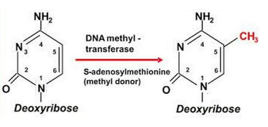 其中,胞嘧啶第5位碳原子上的甲基化(5mC)動態(tài)修飾研究得較為深入。?在真核生物中,最常見的甲基化修飾是5mC。5mC 是DNA的CG雙核苷酸的胞嘧啶被選擇性的添加甲基,形成5-甲基胞嘧啶的過程。其作用方式:①抑制轉(zhuǎn)錄因子的結(jié)合, 從而抑制轉(zhuǎn)錄過程;②結(jié)合抑制因子, 從而抑制轉(zhuǎn)錄過程