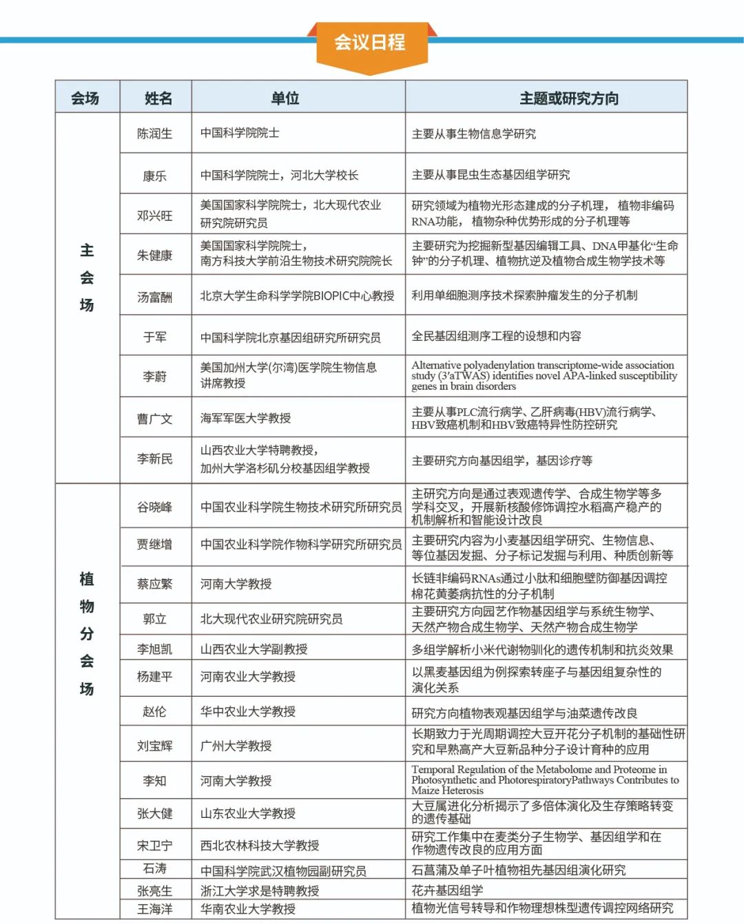隨著基因組組裝(GA)、種質資源鑒定(GC)、基因功能鑒定(GI)、基因組育種(GB)、基因編輯(GE)的5G育種策略快速發(fā)展,以高通量測序技術為基礎的組學研究已經廣泛應用于植物研究的各個領域。本次大會特邀植物功能基因組學、系統(tǒng)與進化植物學、表觀遺傳學等熱點領域專家齊聚一堂,分享植物研究的前沿技術、經驗成果及發(fā)展前景。