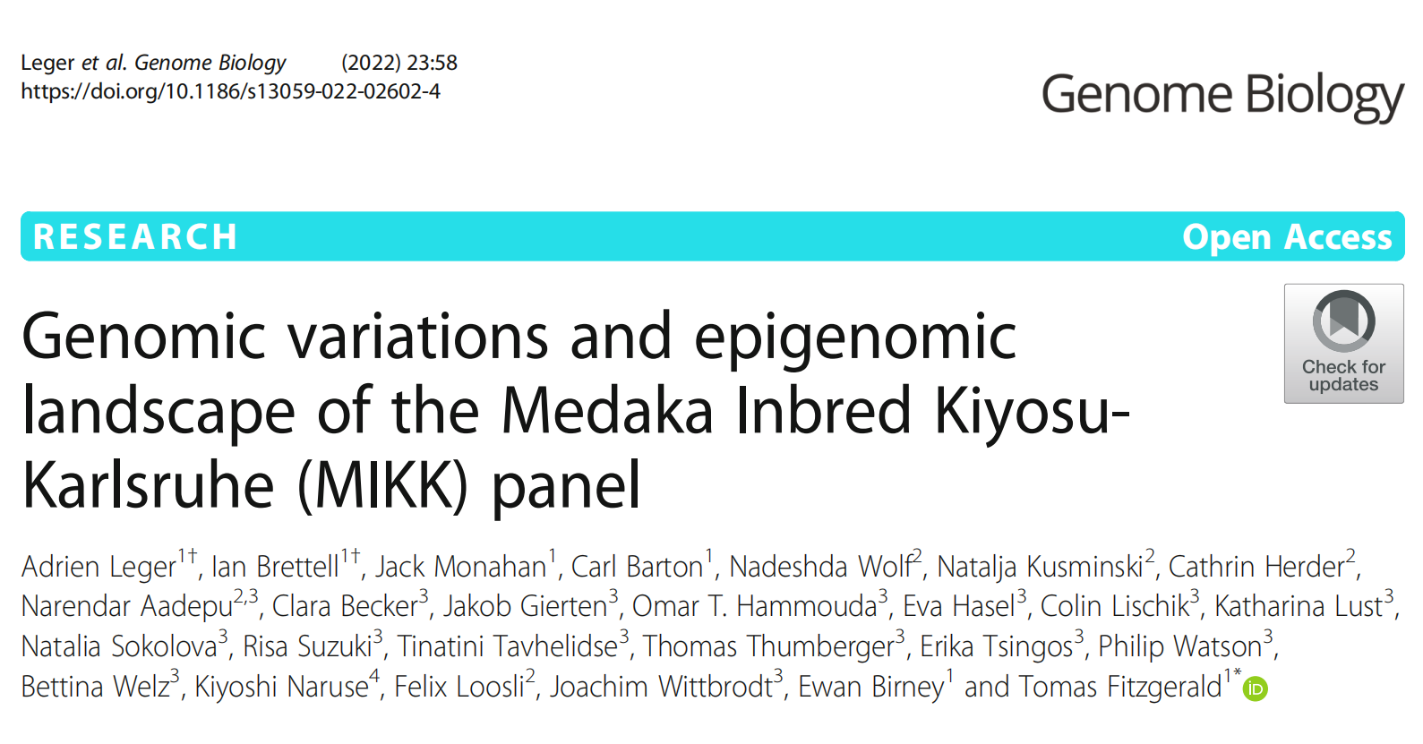 日本田中魚(yú)(Oryzias latipes)作為脊椎動(dòng)物模式生物有著悠久的歷史。我們利用其異常高的近親繁殖耐受性建立了Medaka近親繁殖Kiyosu Karlsruhe(MIKK)小組:來(lái)自單個(gè)野生種群的近等基因脊椎動(dòng)物系的集合[3]。