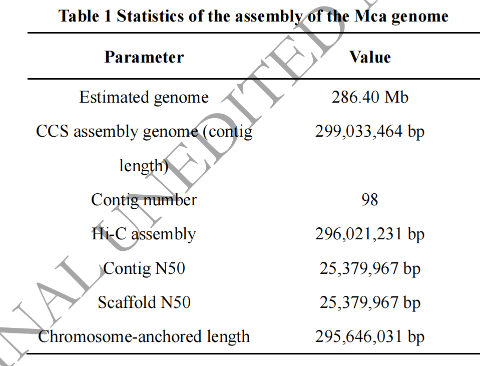 Denovo測序: survey 21.28 Gb(~74.31×);HiFi 31 Gb(~103.96×);Hi-C 51 Gb(~178 X)